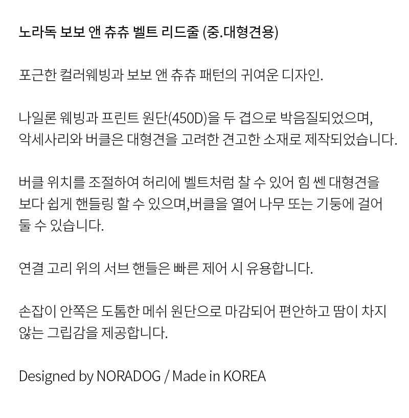 노라독 보보츄츄 벨트 리드줄 (중,대형견용)