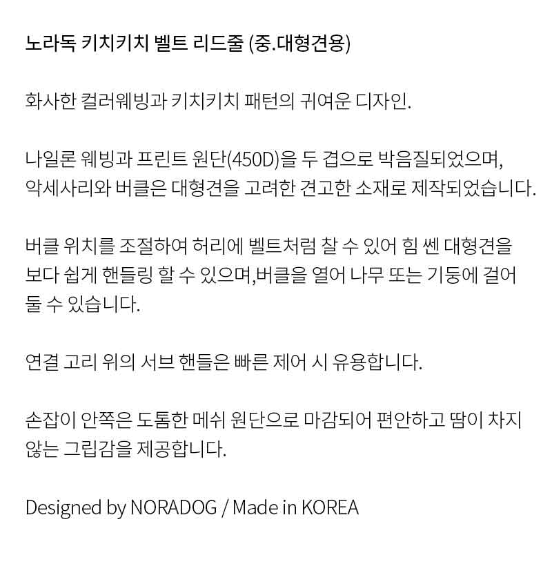노라독 키치키치 벨트 리드줄 (중,대형견용)