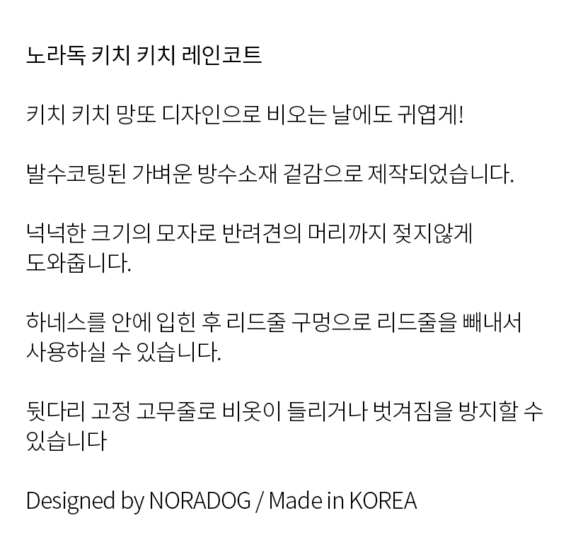 기존 우비에 모자 디테일이 더해져 제작되었습니다.