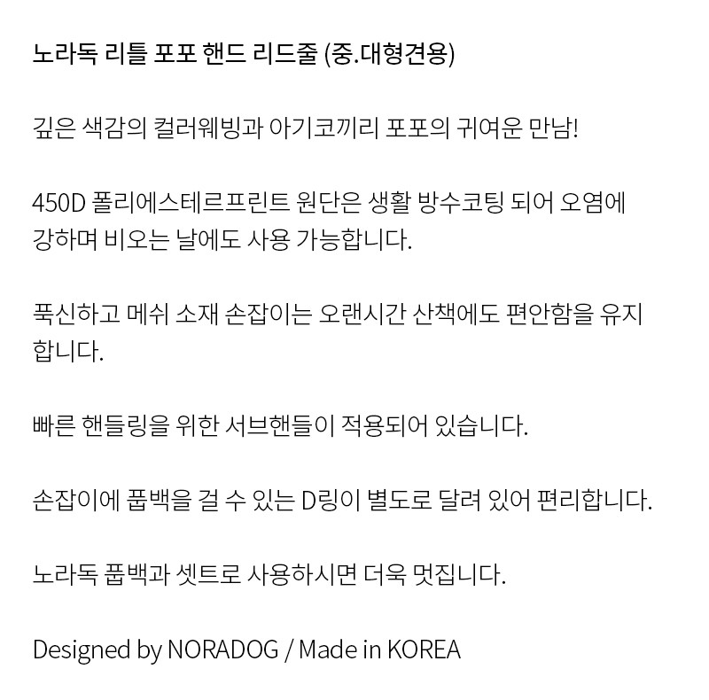 노라독 리틀포포 핸드 리드줄 (중,대형견용)