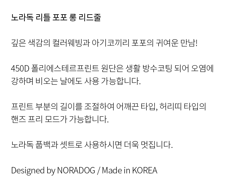 노라독 리틀포포 핸즈프리 롱리드줄 (소형견용)
