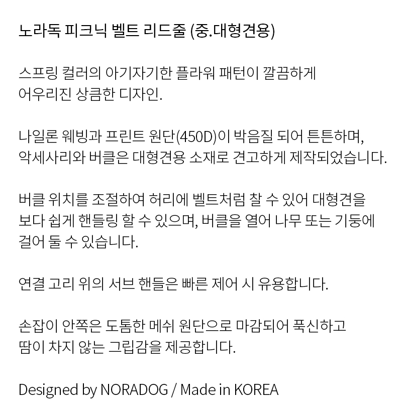 노라독 피크닉 벨트 리드줄 (중,대형견용)