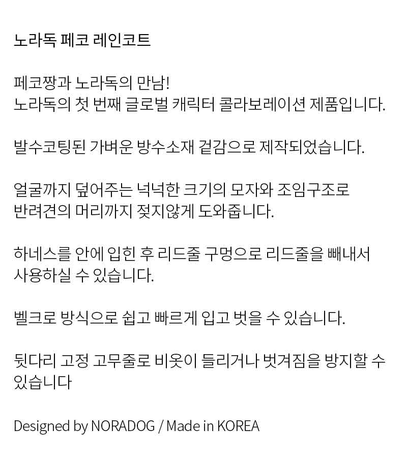기존 우비에 모자 디테일이 더해져 제작되었습니다.