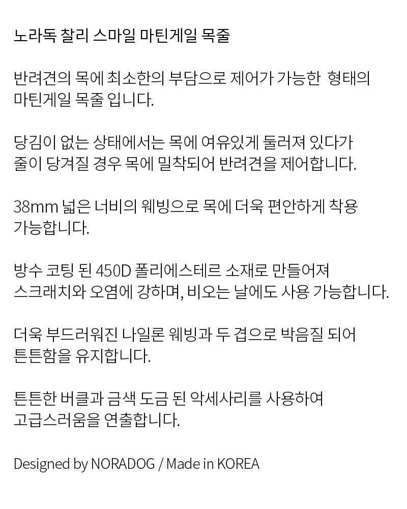 노라독 찰리스마일 마틴게일 목줄/목걸이 2color