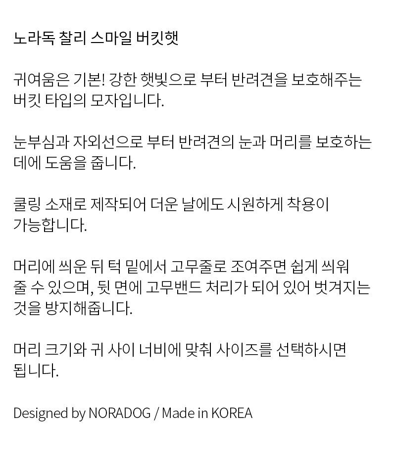 노라독 찰리 스마일 버킷햇 강아지 모자