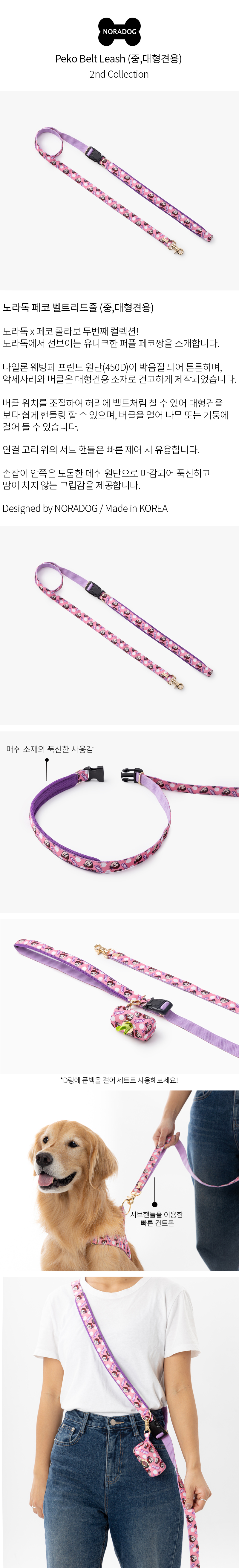 노라독 페코 핑크 벨트 리드줄 (중,대형견용)